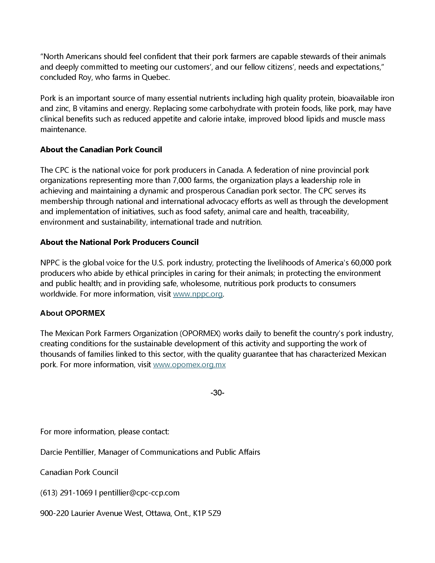 The 2025 North America Pork Producers Trilateral Meeting, hosted by the Canadian Pork Council, brought together pork industry representatives from Canada, the United States and Mexico. Participants included the Canadian Pork Council, the National Pork Producers Council of the United States (NPPC) and the National Pork Producers Association of Mexico (OPORMEX).